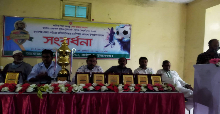 ধর্মপাশায় ফুটবল টুর্নামেন্টে চ্যাম্পিয়নদের সংবর্ধনা