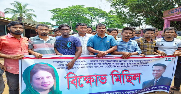 ধর্মপাশায় ছাত্রদলের বিক্ষোভ মিছিল