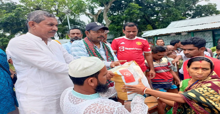 সুনামগঞ্জের ধর্মপাশায় ত্রাণসামগ্রী বিতরণ