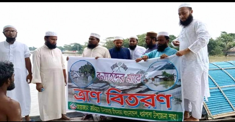 ধর্মপাশায় বন্যার্তদের মাঝে জমিয়তে উলামায়ে ইসলামের ত্রান বিতরণ