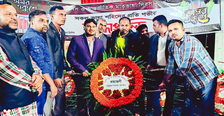 দামুড়হুদায় অমর একুশে ফেব্রুয়ারি উপলক্ষে পুষ্পস্তবক অর্পণ