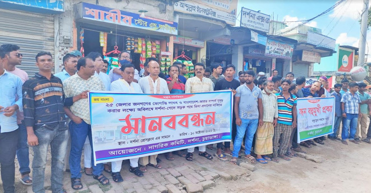 চুয়াডাঙ্গার দর্শনা-গেদে সীমান্ত সড়কপথে ভিসা চালুর দাবিতে মানববন্ধন