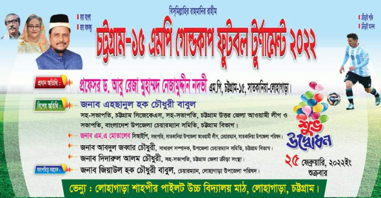 আগামীকাল লোহাগাড়ায় এমপি গোল্ডকাপ ফুটবল টুর্নামেন্টের উদ্বোধন