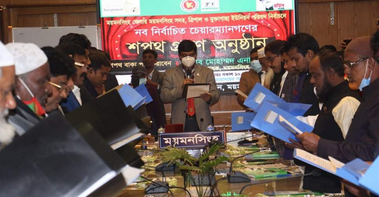 ময়মনসিংহে নবনির্বাচিত ইউনিয়ন পরিষদের চেয়ারম্যানদের শপথ গ্রহণ
