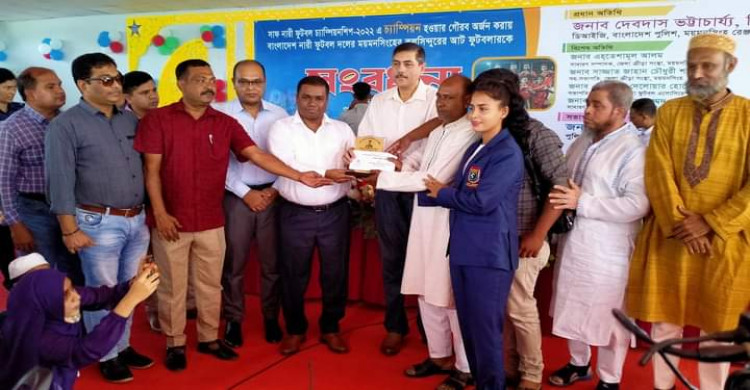 ময়মনসিংহে সাফ নারী ফুটবলাদের সংবর্ধনা দিলেন জেলা পুলিশ