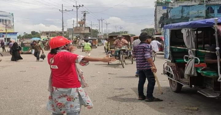 যানবাহন নিয়ন্ত্রণে ট্রাফিক পুলিশের দায়িত্বে শিক্ষার্থী