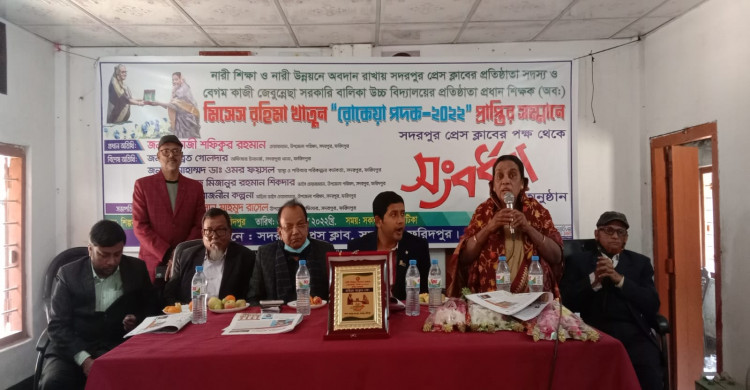 সদরপুরে নারী শিক্ষায় রোকেয়া পদক প্রাপ্ত রহিমা খাতুনকে সংবর্ধনা