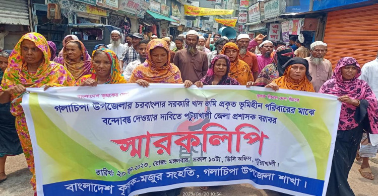 পটুয়াখালীতে চরবাংলার ভূমিহীন নারী-পুরুষের মানববন্ধন