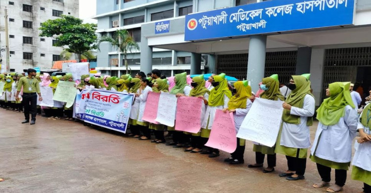 পটুয়াখালীতে ইন্টার্নশীপ ডিপ্লোমা নার্সদের ভাতা চালুর দাবীতে মানববন্ধন ও কর্মবিরতি