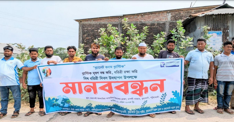 পটুয়াখালীতে প্লাস্টিক দূষণ বন্ধের দাবিতে মানবন্ধন