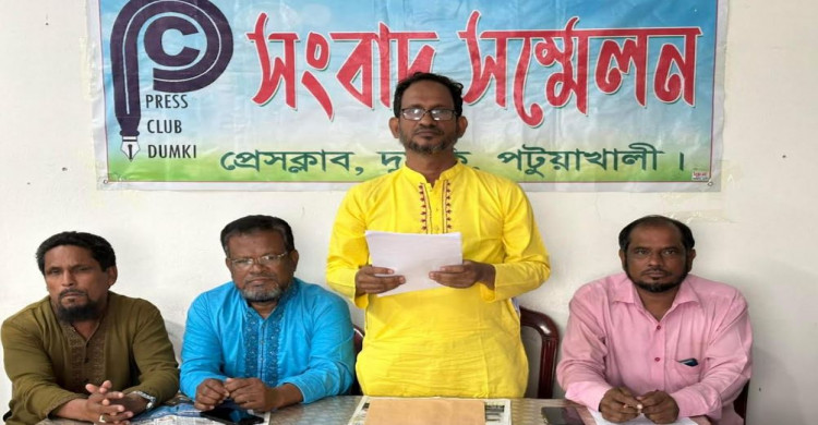 পটুয়াখালীর দুমকিতে খালে বাঁধ দিয়ে মাছ চাষ, মানববন্ধণকে কেন্দ্র করে সংবাদ সম্মেলন