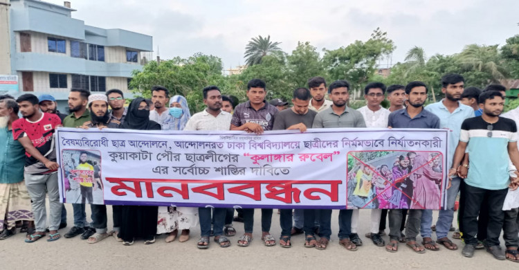 ঢাবিতে ছাত্রী পেটানো সেই ছাত্রলীগ কর্মীর শাস্তি চেয়ে কুয়াকাটায় মানববন্ধন