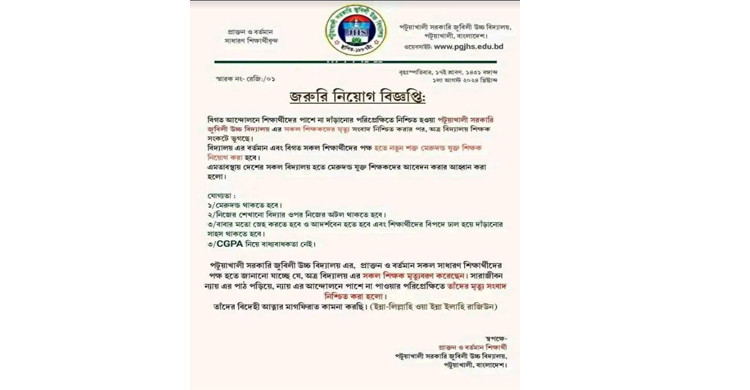 মেরুন্ডযুক্ত শিক্ষক চেয়ে শিক্ষার্থীদের নিয়োগ বিজ্ঞপ্তি প্রকাশ