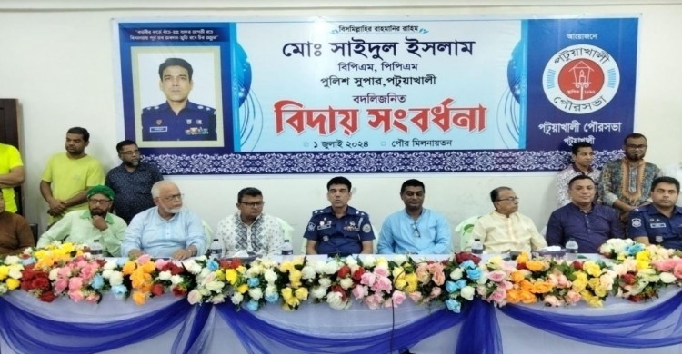 পটুয়াখালী পৌরসভার উদ্যোগে পুলিশ সুপার মো.সাইদুল ইসলামকে বিদায় সংবর্ধনা