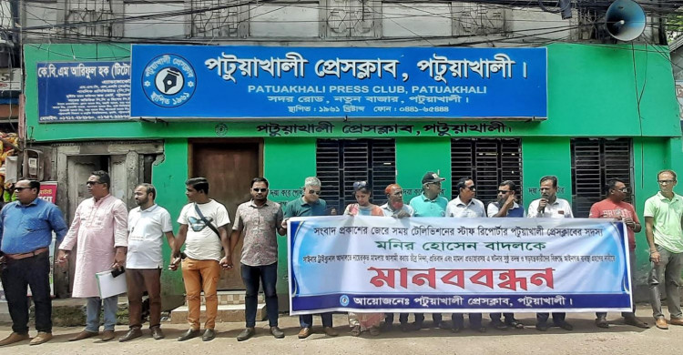 পটুয়াখালীতে প্রেসক্লাব উদ্যোগে মানববন্ধন