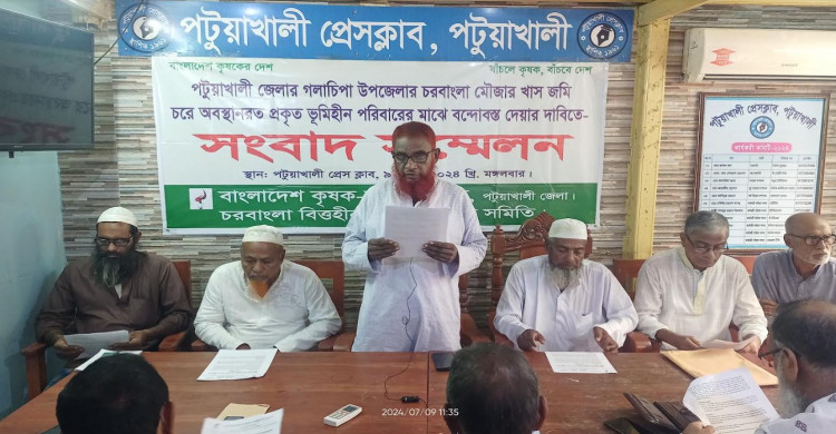 পটুয়াখালীতে সরকারী খাস জমি বন্দোবস্ত পাওয়ার দাবীতে চরবাংলার ভূমিহীনদের সংবাদ সম্মেলন