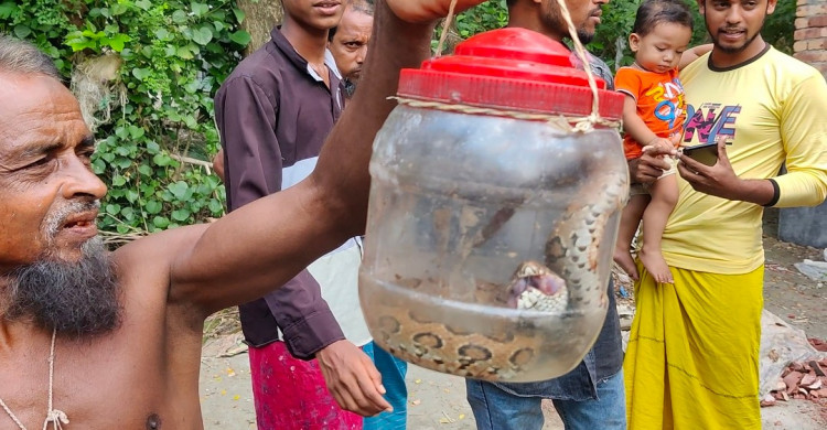 পটুয়াখালীর কলাপাড়ায় কৃষকের জালে ধরা পড়লো কিলিংমেশিন খ্যাত ভয়ংকর রাসেলস ভাইপার