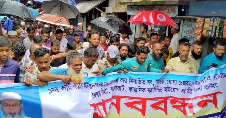 পটুয়াখালীতে ইউপি চেয়ারম্যনের বিরুদ্ধে মিথ্যা অভিযোগের প্রতিবাদে বিক্ষোভ