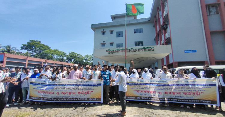 শিক্ষা ভবনে শিক্ষকদের ওপর হামলার প্রতিবাদে পটুয়াখালীতে মানববন্ধন