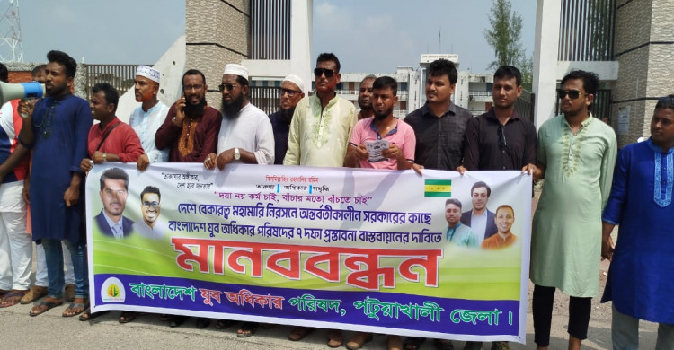 পটুয়াখালীতে ৭ দফা দাবিতে যুব অধিকার পরিষদের মানববন্ধন