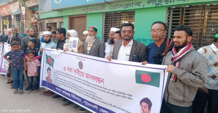 পিলখানা হত্যাকান্ডের পেছনের নায়কদের শাস্তিসহ ৩ দফা দাবিতে পটুয়াখালীতে ক্ষতিগ্রস্ত বিডিআর সদস্যদের মানববন্ধন