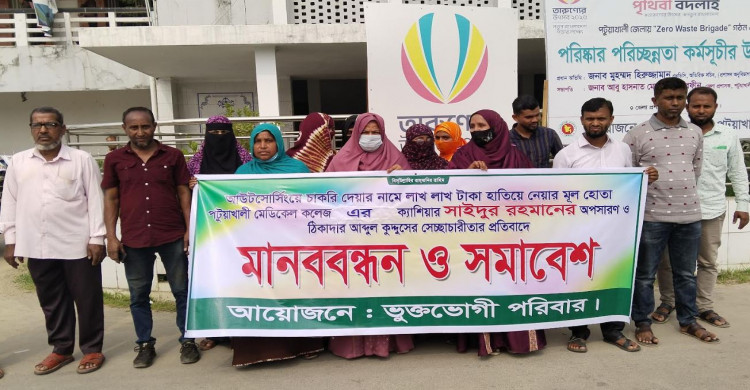 পটুয়াখালীতে চাকুরি দেয়ার নামে টাকা হাতিয়ে নেওয়ার অভিযোগে ভুক্তভোগীদের মানবন্ধন