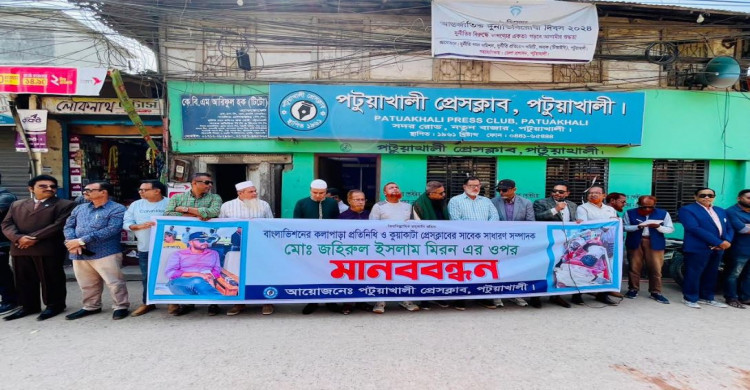 সাংবাদিক জহিরুলের উপর হামলার প্রতিবাদে পটুয়াখালী প্রেসক্লাবের মানববন্ধন