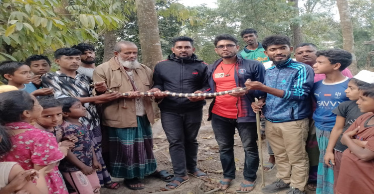 কলাপাড়ায় লোকালয় থেকে শঙ্খিনী সাপ উদ্ধার