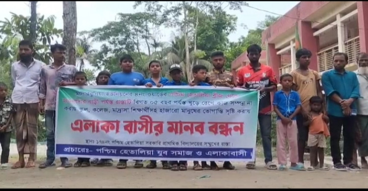 পটুয়াখালীতে রাস্তা সংস্কারের দাবিতে শিক্ষার্থী ও এলাকাবাসীর মানববন্ধন