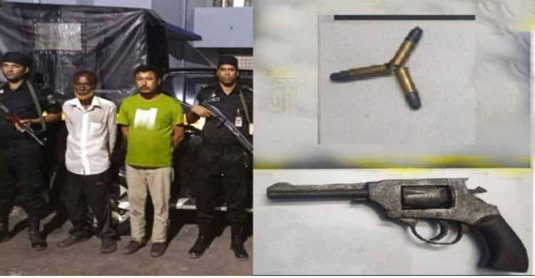 মাইক্রোবাসে তল্লাশি করে বিদেশি রিভলবার ও ৩ রাউন্ড গুলিসহ দুইজন গ্রেপ্তার