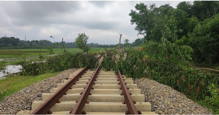 আখাউড়া-আগরতলা নবনির্মিত রেললাইন গাছ ফেলে প্রতিবন্ধকতা, রেল প্রকল্পে জায়গা নেই সেই শাহানুরের