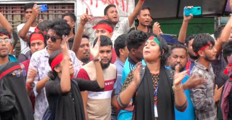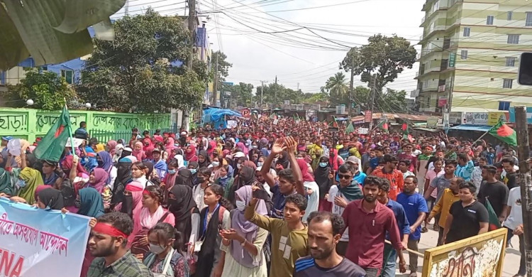 পঞ্চগড়ে শিক্ষার্থীদের বিক্ষোভ মিছিলে সেনাবাহিনীর সরকার বার বার দরকার বলে স্লোগান