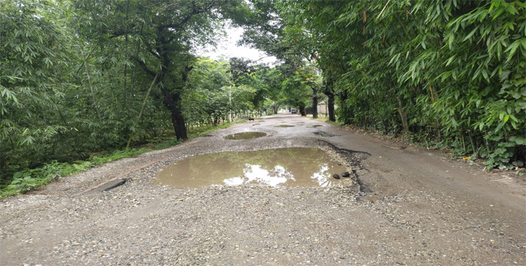 দেবীগঞ্জ ভাওলাগঞ্জ সড়কে খানাখন্দে করুনদশা, দুর্ঘটনার শঙ্কা