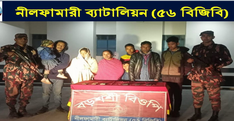 বোদায় অবৈধভাবে অনুপ্রবেশের সময় বিজিবির হাতে ৮ বাংলাদেশী আটক