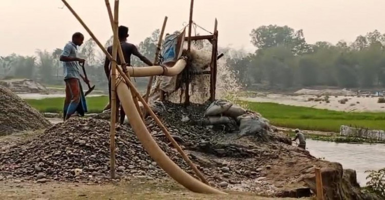 তেতুলিয়ায় সীমান্তে অবৈধভাবে পাথর উত্তোলন