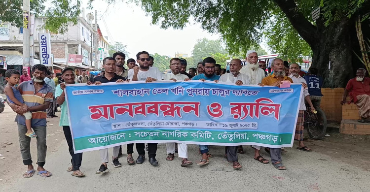 শালবাহান তেলের খনি পুনরায় চালুর দাবিতে তেঁতুলিয়ায় মানববন্ধন