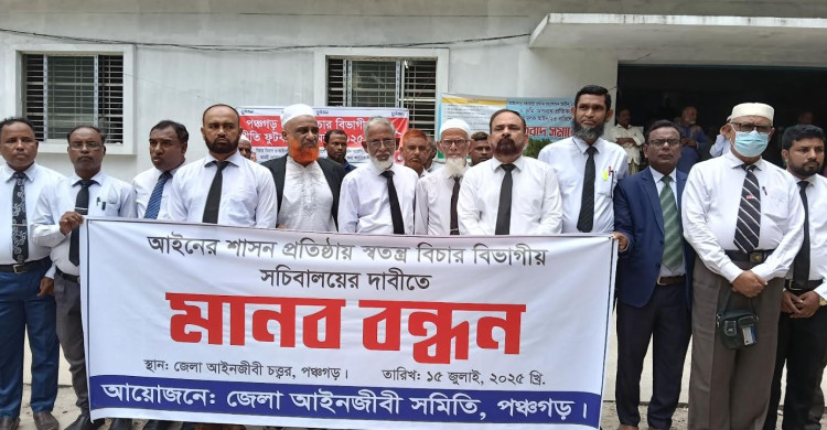 স্বতন্ত্র বিচার বিভাগীয় সচিবালয়ের দাবিতে পঞ্চগড়ে আইনজীবীদের মানববন্ধন