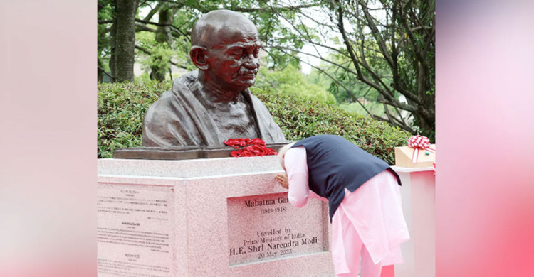 হিরোশিমায় মহাত্মা গান্ধীর আবক্ষ মূর্তি উন্মোচন করলেন মোদি