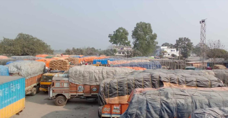 বুড়িমারী স্থলবন্দরে শ্রমিক অসন্তোষ: খালাসের অপেক্ষায় শত শত ট্রাক, বন্ধ আমদানি রপ্তানি