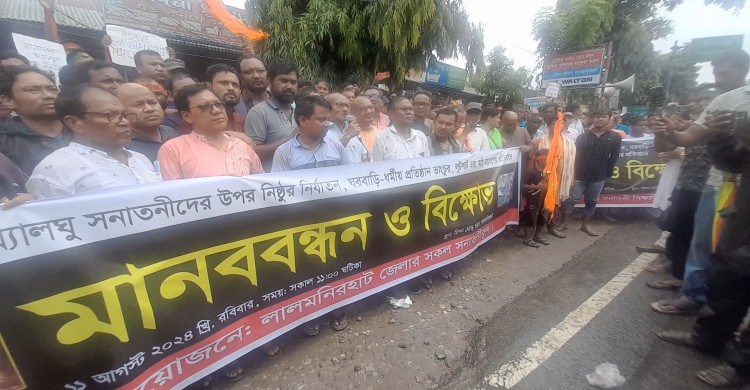 সংখ্যালঘুদের উপর হামলা, লুটপাটের প্রতিবাদে লালমনিরহাটে সনাতনীদের বিক্ষোভ