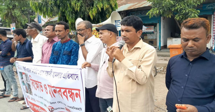 ইস্ট ওয়েস্ট মিডিয়া কমপ্লেক্সে হামলার প্রতিবাদে লালমনিরহাটে মানববন্ধন