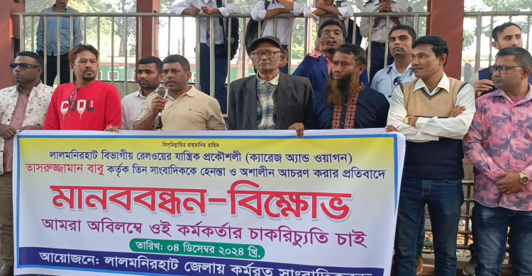 সাংবাদিকদের হেনস্থাকারী রেল কর্মকর্তার শাস্তির দাবিতে মানববন্ধন