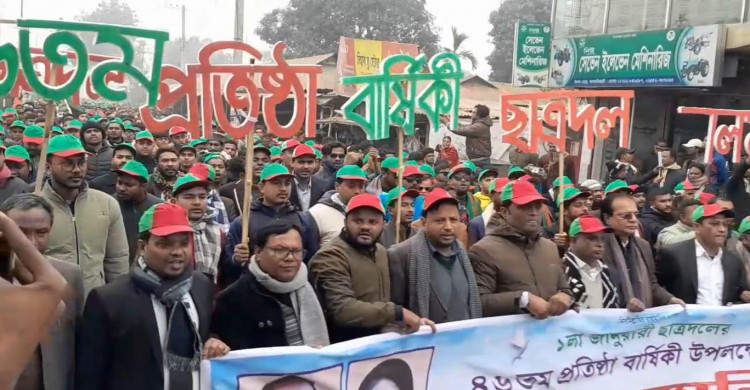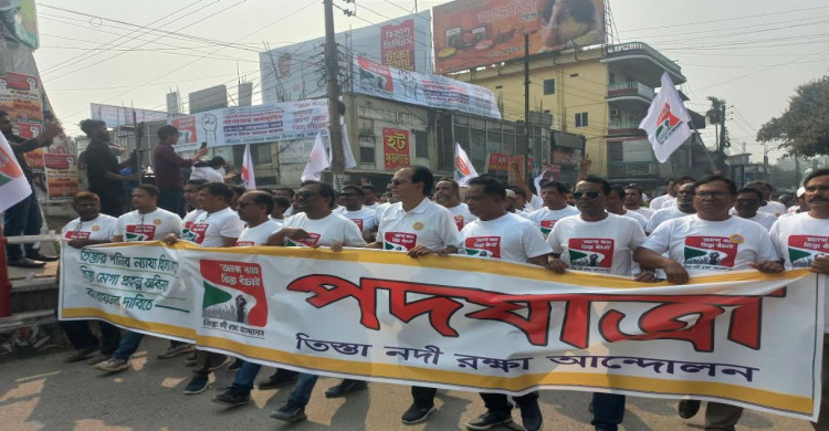তিস্তা মেগাপরিকল্পনা বাস্তবায়নের দাবিতে জাগো বাহে তিস্তা বাঁচাই আন্দোলনের বিশাল পদযাত্রা অনুষ্ঠিত