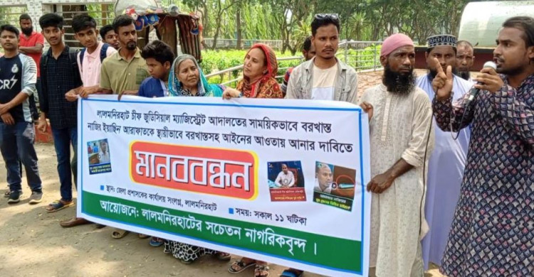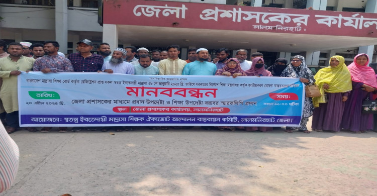 লালমনিরহাটে ইবতেদায়ী মাদ্রাসার মানববন্ধন ও স্মারকলিপি প্রদান