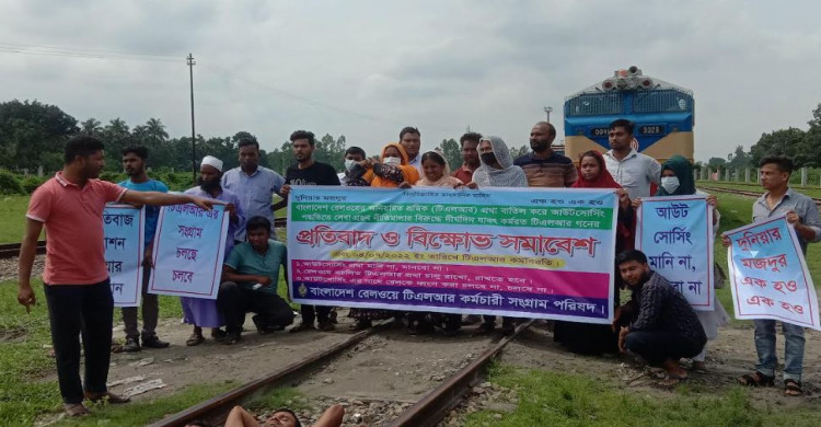 লালমনিরহাটে টিএলআর শ্রমিক পদ বাতিলের প্রতিবাদে বিক্ষোভ সমাবেশ ও রেললাইন অবরোধ