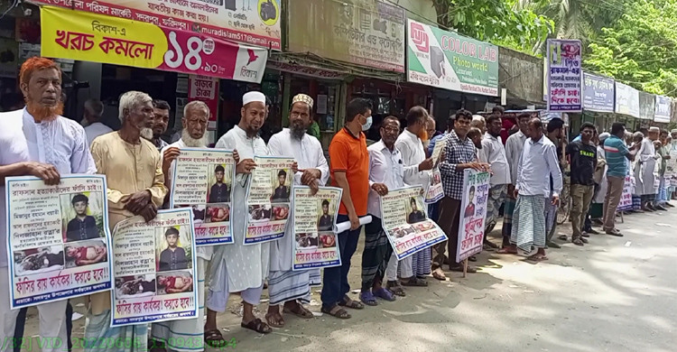 সদরপুরে চেয়ারম্যানপুত্র হত্যাকারীদের ফাঁসির দাবিতে মানববন্ধন
