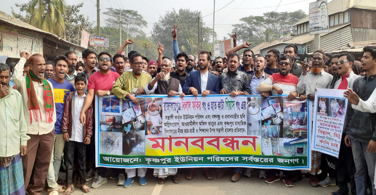 সদরপুরের কৃষ্ণপুরে ইউনিয়ন পরিষদ ভাংচুরের প্রতিবাদে মানববন্ধন