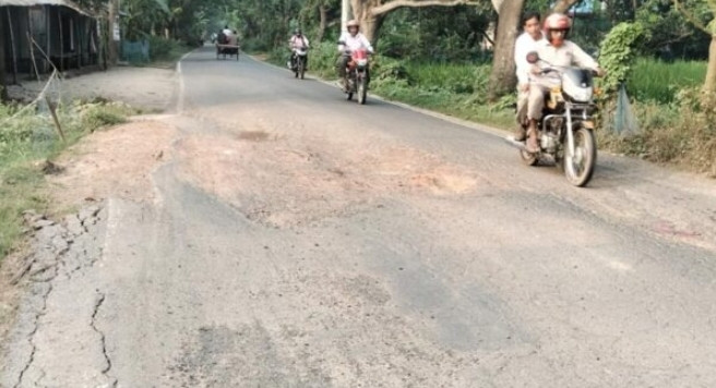 তানোরে এলজিইডির সদ্য নির্মিত রাস্তায় ভাঙন, কর্তৃপক্ষ নীরব