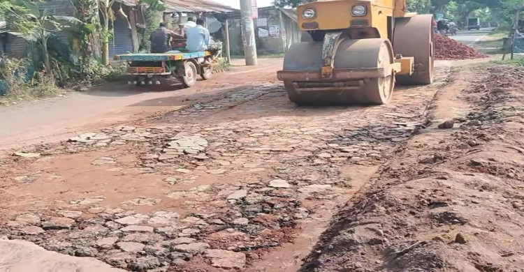 তানোরে সকালের সময়ে সংবাদ প্রকাশের পর সড়কের সংস্কারকাজ শুরু