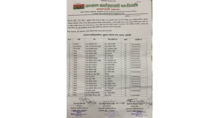তানোর মুন্ডমালা পৌর বিএনপির আহ্বায়ক কমিটি ঘোষণা